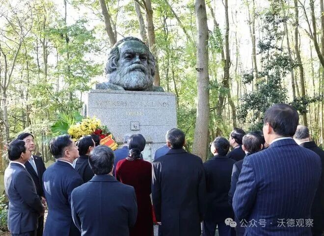 在对大不列颠及北爱尔兰联合王国进行正式访问期间,当地时间10月28日上午,越共中央总书记苏林及夫人吴芳璃率越南高级代表团前往伦敦海格特墓地瞻仰无产阶级领袖卡尔·马克思墓。